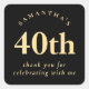 Pegatina Cuadrada Moderno 40 cumpleaños Black and Gold Gracias