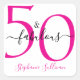 Pegatina de cumpleaños 50 moderna minimalista cincuenta y fabulosa en rosa y negro que puedes personalizar para celebrar tu cumpleaños cincuenta. Las palabras "Cincuenta y fabuloso" están escritas con tipografía de fuente en negrita de moda. Los colores del texto se pueden cambiar utilizando el menú de edición.
