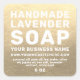 Moderno y mínimo pegatina de jabón de lavanda hecha a mano con tu nombre y sitio web o dirección en una tipografía blanca simple y elegante con un fondo de champán dorado. Simplemente agregue su nombre comercial, el nombre del producto, ingredientes, peso y su sitio web o dirección a la etiqueta. Diseñado exclusivamente para usted por Happy Dolphin Studio. Si necesita ayuda o productos coincidentes, por favor contáctenos en happydolphinstudio@outlook.com.