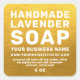 Moderno y mínimo pegatina de jabón de lavanda hecha a mano con tu nombre y sitio web o dirección en tipografía blanca simple y elegante sobre un fondo dorado. Simplemente agregue su nombre comercial, el nombre del producto, ingredientes, peso y su sitio web o dirección a la etiqueta. Diseñado exclusivamente para usted por Happy Dolphin Studio. Si necesita ayuda o productos coincidentes, por favor contáctenos en happydolphinstudio@outlook.com.
