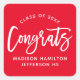 Pegatina Cuadrada Modernos Congrats Guión Graduación Roja