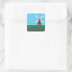 Pegatina Cuadrada Molino de viento entre las flores de tulipán