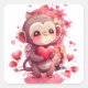 Pegatina Cuadrada Mono del Día de San Valentín con Corazón Bonito
