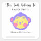 Pegatina Cuadrada Mono - Este libro pertenece con mensaje