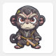 Pegatina Cuadrada Mono lindo Samurai Mono Adorable que atrapa los oj