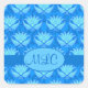 Pegatina Cuadrada Monograma azul turquesa Art Nouveau Damask