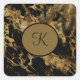 Pegatina Cuadrada Monograma Black Gold Marble Agate Trendy Modern