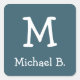 Pegatina Cuadrada Monograma blanco y nombre en cuadrado redondeado a