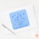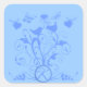 Pegatina Cuadrada Monograma Boda Aves Corazones girando en polvo azu