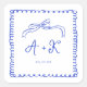 Pegatina Cuadrada Monograma Boda azul dibujado a mano