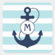 Pegatina Cuadrada Monograma de anclaje naumático azul claro