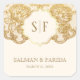 Pegatina Cuadrada Monograma de crema y encaje de Relieve metalizado
