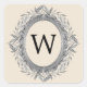 Pegatina Cuadrada Monograma de flor de flores plateadas festividades