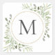 Pegatina Cuadrada Monograma de follaje de eucalipto verde