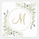 Pegatina Cuadrada Monograma de guión dorado elegante con vegetación