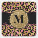 Pegatina Cuadrada Monograma de impresión de leopardo rosa y purpurin