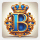 Un monograma de letra B azul suntuoso enmarcado por un elaborado trabajo de oro y una corona real, creando un emblema audaz y de alta gama ideal para la marca de lujo, invitaciones y temas de diseño clásico.