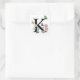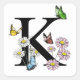 Pegatina Cuadrada Monograma de mariposa acuarela floral letra K