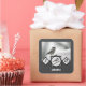 El punto focal del diseño es un adorable pollito de montaña con un estallido de 8 puntos con iniciales a cada lado que se puede personalizar a su propio monograma. La imagen encima del escudo del lindo pájaro en la nieve, sin embargo, puede cambiarse su propia imagen, foto o selfie. El siguiente texto es para un amigo o tu .name