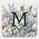 Pegatina Cuadrada Monograma dibujo floral tullitos rosados daffodios