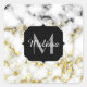 Pegatina Cuadrada Monograma dorado brillante de mármol blanco y negr