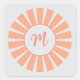 El encanto se une al contacto personal con estos clásicos pegatinas cuadrados, con un Monograma "M" en Peach y Gray, rodeados de rayos de melocotón. Aumenta tu estilo y pertenencias con un toque de personalidad.
