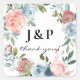 Pegatina Cuadrada Monograma floral Dusto azul y rosa Rubor - Blanco