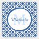 Pegatina Cuadrada Monograma geométrico moderno azul y blanco con nom