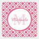 Pegatina Cuadrada Monograma geométrico moderno rosa y blanco con nom