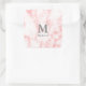 Pegatina Cuadrada Monograma gris personalizado y nombre en mármol ro