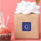 Pegatina Cuadrada Monograma inicial con marco azul marino