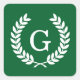 Pegatina Cuadrada Monograma inicial de Laurel de Trigo Blanco Forest