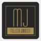 Pegatina Cuadrada Monograma inicial moderno negro y oro