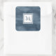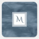 Pegatina Cuadrada Monograma moderno de mármol azul sutil de la marin