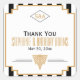 Boda de patrón retro de arte blanco, negro y dorado monogramado, gracias pegatina. Un pegatina de estilo años 20. El diseño está decorado con una paleta dorada de color amarillo, negro y blanco y con motivos inspirados en el estilo art deco y con motivos de rayas negras y blancas en el fondo.