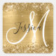 Pegatina Cuadrada Monograma negro y blanco Relieve metalizado dorado