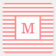 Pegatina Cuadrada Monograma Personalizado de franjas rojas y blancas