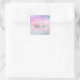 Pegatina Cuadrada Monograma rosa de Purpurina de unicornio con arcoi