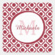 Pegatina Cuadrada Monograma y nombre geométrico moderno rojo y blanc