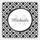 Pegatina Cuadrada Monograma y nombre geométricos modernos en blanco