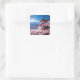 Pegatina Cuadrada Montaña Fuji pintada en temporada de flores de cer