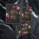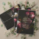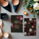 Add a refined finishing touch to your wedding stationery with this moody floral wedding sticker, featuring rich burgundy, blush, and ivory blooms set against a deep black background.