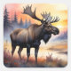 Pegatina Cuadrada Moose acuático al amanecer
