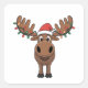 Pegatina Cuadrada Moose Christmas Tree ilumina divertidas Xmas Moose