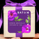 Pegatina Cuadrada Morado Bat Mitzvah Negrita acuarela floral moderna