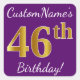 Pegatina Cuadrada Morado, Faux Gold 46th Birthday + Nombre personali