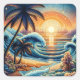 Pegatina Cuadrada Mosaic Ai Art | Atardecer oceánico y palmeras