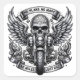Esta llamativa obra de arte representa una motocicleta personalizado adornada con un cráneo prominente, simbolizando la audacia y la aventura. Rodeado de majestuosas alas, el diseño transmite una sensación de libertad y rebelión. Una pancarta encima de la motocicleta muestra frases audaces que enfatizan un estilo de vida despreocupado, motivadores conductores para abrazar la espontaneidad sin los límites de los planes o las reglas. Los elementos detallados crean una potente declaración visual de la cultura de la motocicleta.