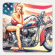 Pegatina Cuadrada Motorciclo Retro Pin Up