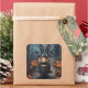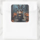 Pegatina Cuadrada Motores de Boston Terrier Montando en Motocicleta